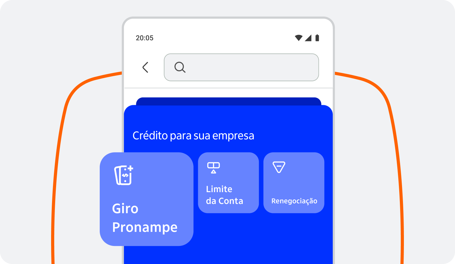 - 1Acesse o Menu, vá até a opção “Crédito para a sua empresa” e então toque em "Pronampe"