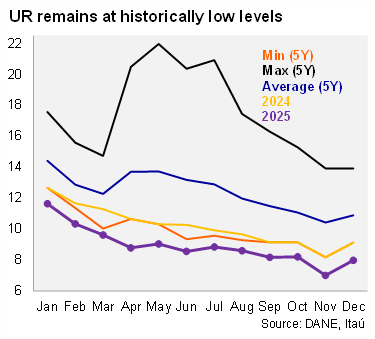 Our take: Despite the favorable labor market performance through 2025, after the significant minimum wage increase, we expect the average unemployment rate to increase this year to 10.2%.
