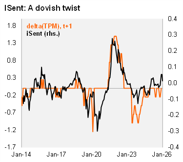 Activity was weak during the close of 2025 but dragged down by transitory factors. Regarding expenditure, short‑term indicators linked to consumption and investment suggest growth in line with expectations.
