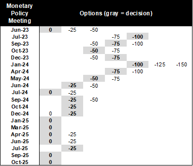 The board’s discussion showed differing views on the next steps for monetary policy. One board member highlighted elevated core inflation and inflation pressures, in the context of a policy rate that was already very close to the upper half of neutral levels. Another member stated that a 25bp cut could have been discussed, because of lower inflation risks, yet would have been quickly dismissed. Another member mentioned that the policy rate should continue declining if inflationary risks moderate, as could be interpreted from recent data on wages, the exchange rate and activity.